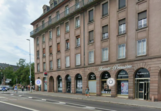 Quai du Général Koenig, à 2 pas des accès autoroutiers et des transports en commun (Bus & Tram), Local professionnel de 87.14 m² sur 2 niveaux, avec au premier niveau un accueil + espaces et au second niveau un dégagement, un espace sanitaire avec lavabo et WC, un dressing, espaces de travail.