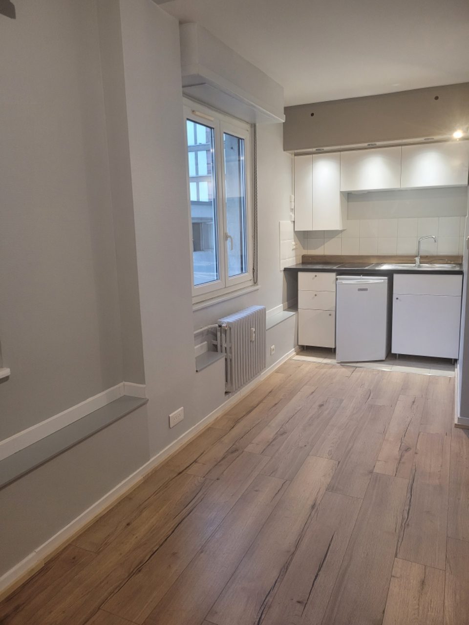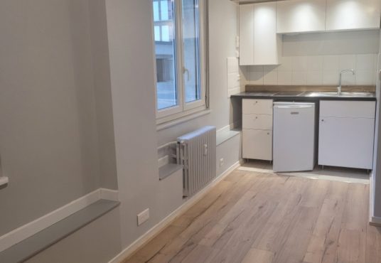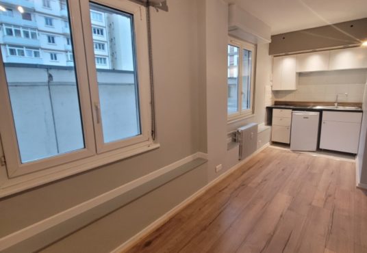 Quartier Halles, au 1er étage avec ascenseur, au calme coté cour, T1 de 21.20 m² refait à neuf. Il se compose d’une pièce de vie, une salle d’eau avec baignoire et WC.