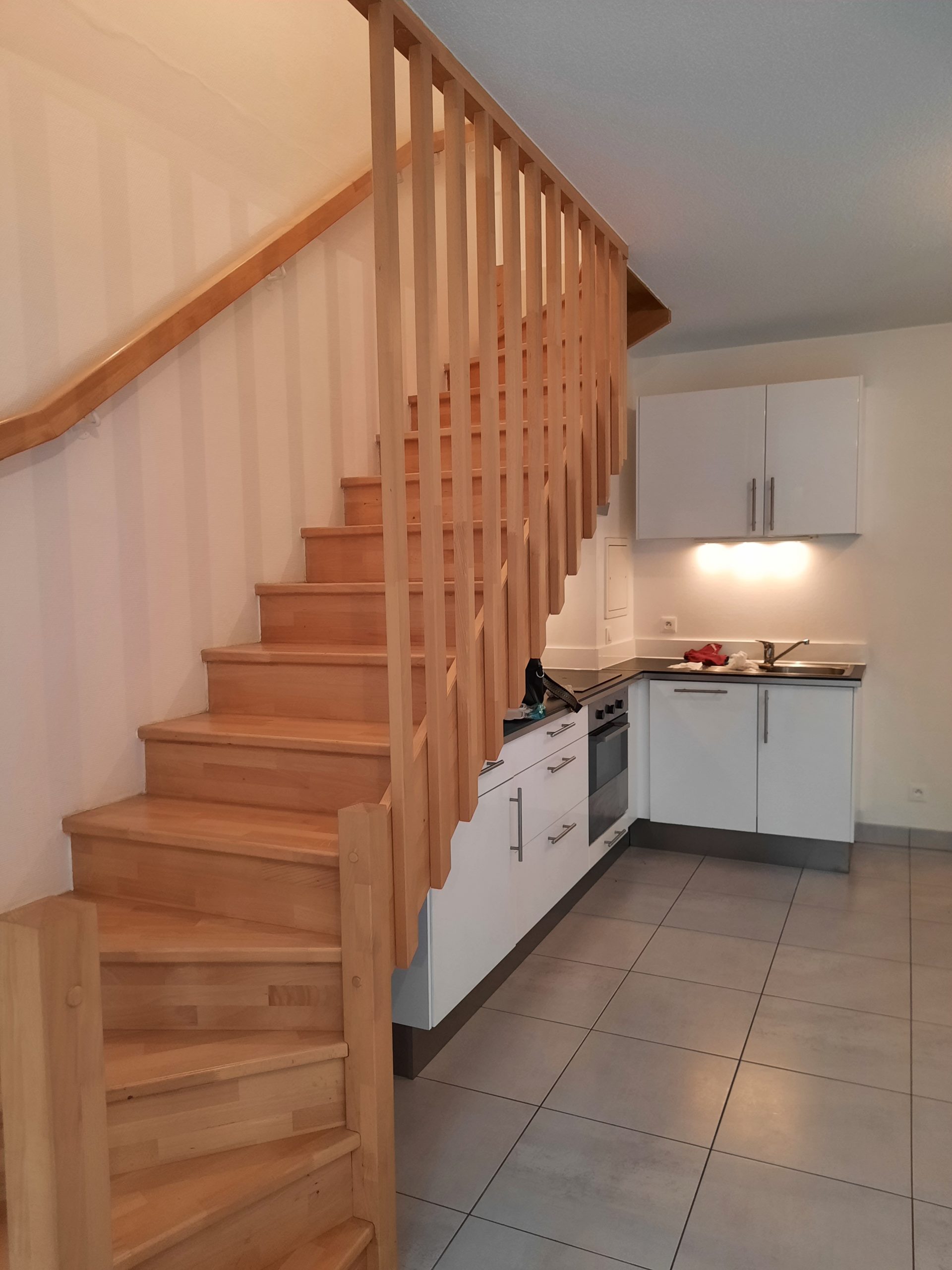 Rue du Nideck, dans rue calme à sens unique, agréable 3 pièces en duplex d’une surface habitable de 60.48 m2 et au sol de 67.57 m2 – situé au 3e et 4e étage avec ascenseur .