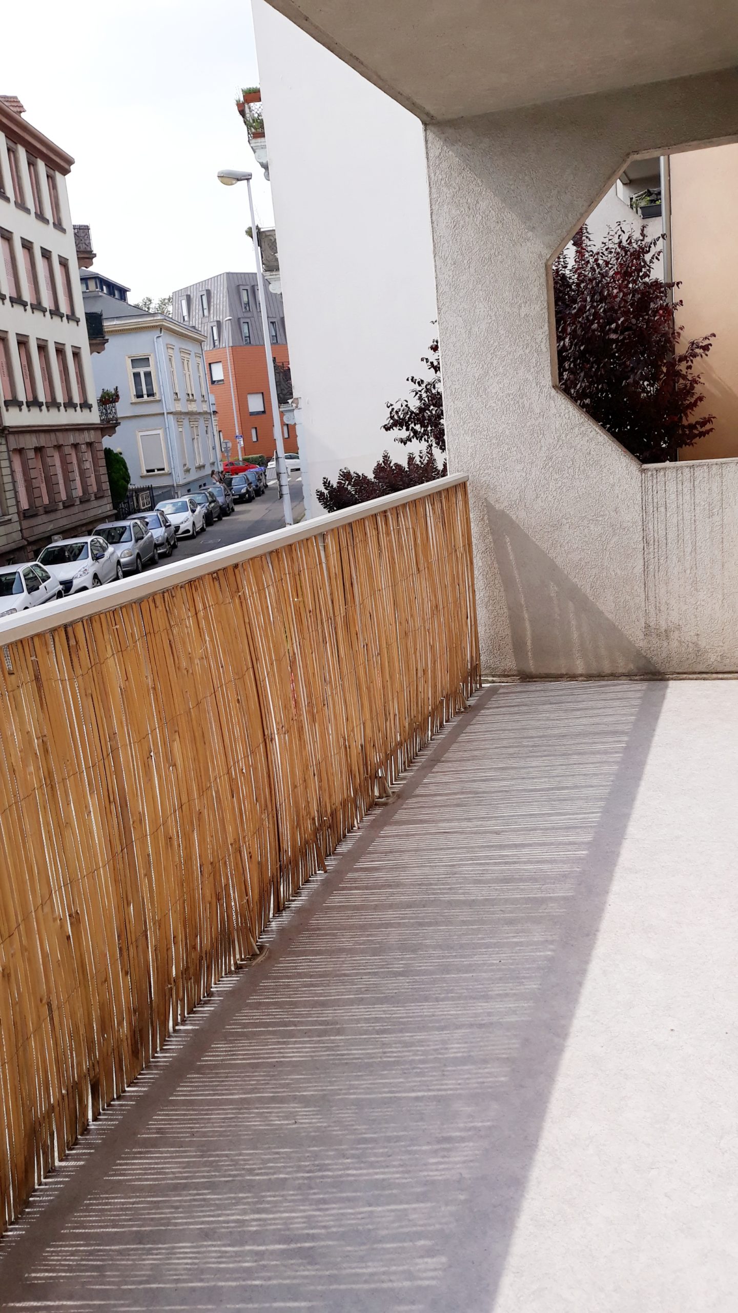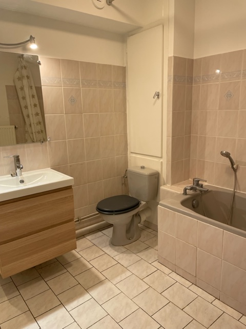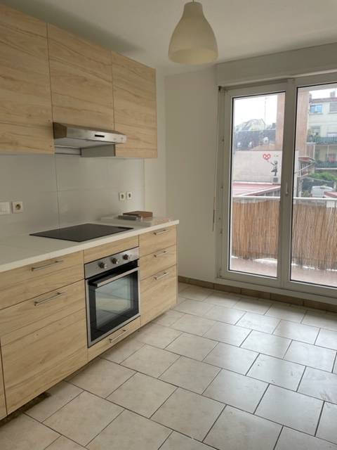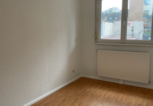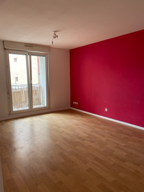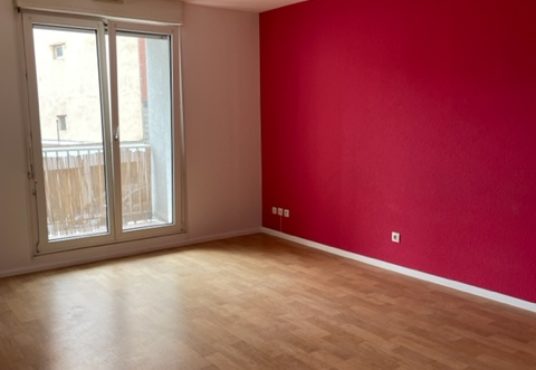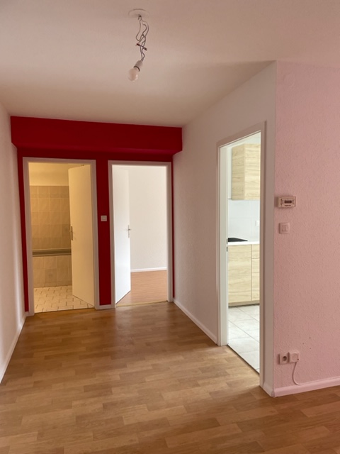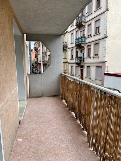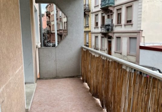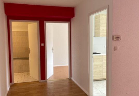 Rue d’Erstein, au 1er étage, appartement de 3 pièces de 65.05 m² composé d’une entrée ouverte sur le séjour donnant accès à un balcon, d’une cuisine équipée (hotte, plaques, four), de deux chambres, d’une salle de bains avec baignoire et WC.